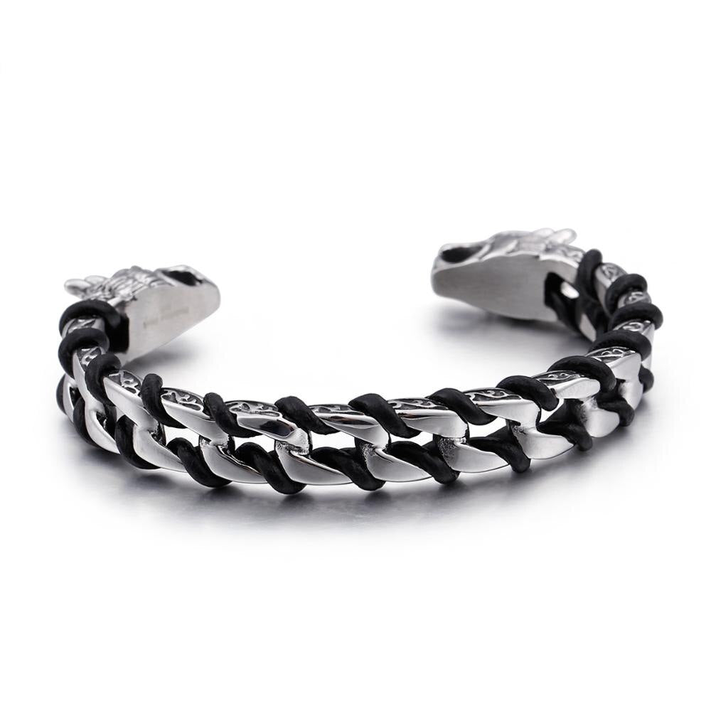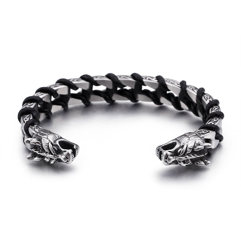 Bracelet Viking Loup Fenrir en Acier à 54 € — la résistance de Fenrir, le loup indestructible dans l’acier qui dure. Retrouvez les bijoux loup Fenrir.